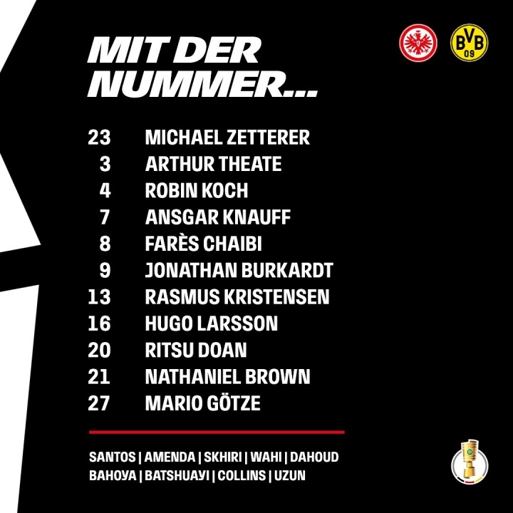 10月29日訊 北京時(shí)間今天1點(diǎn)半,德國(guó)杯第二輪法蘭克福對(duì)陣多特蒙德,此役雙方首發(fā)已經(jīng)公布。
