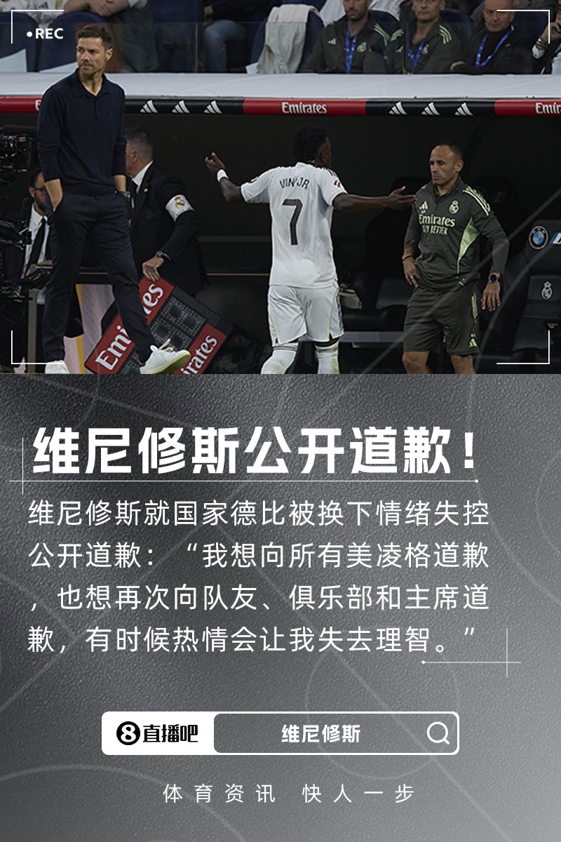 10月30日訊 昨天下午,皇馬邊鋒維尼修斯在個(gè)人社媒上進(jìn)行了公開道歉,因自己在國家德比中被換下時(shí)表現(xiàn)出的行為和態(tài)度表達(dá)了歉意。