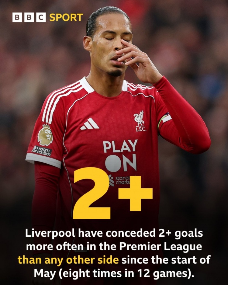 防守堪憂!利物浦5月份以來8場聯(lián)賽丟球2+,英超球隊同期最多